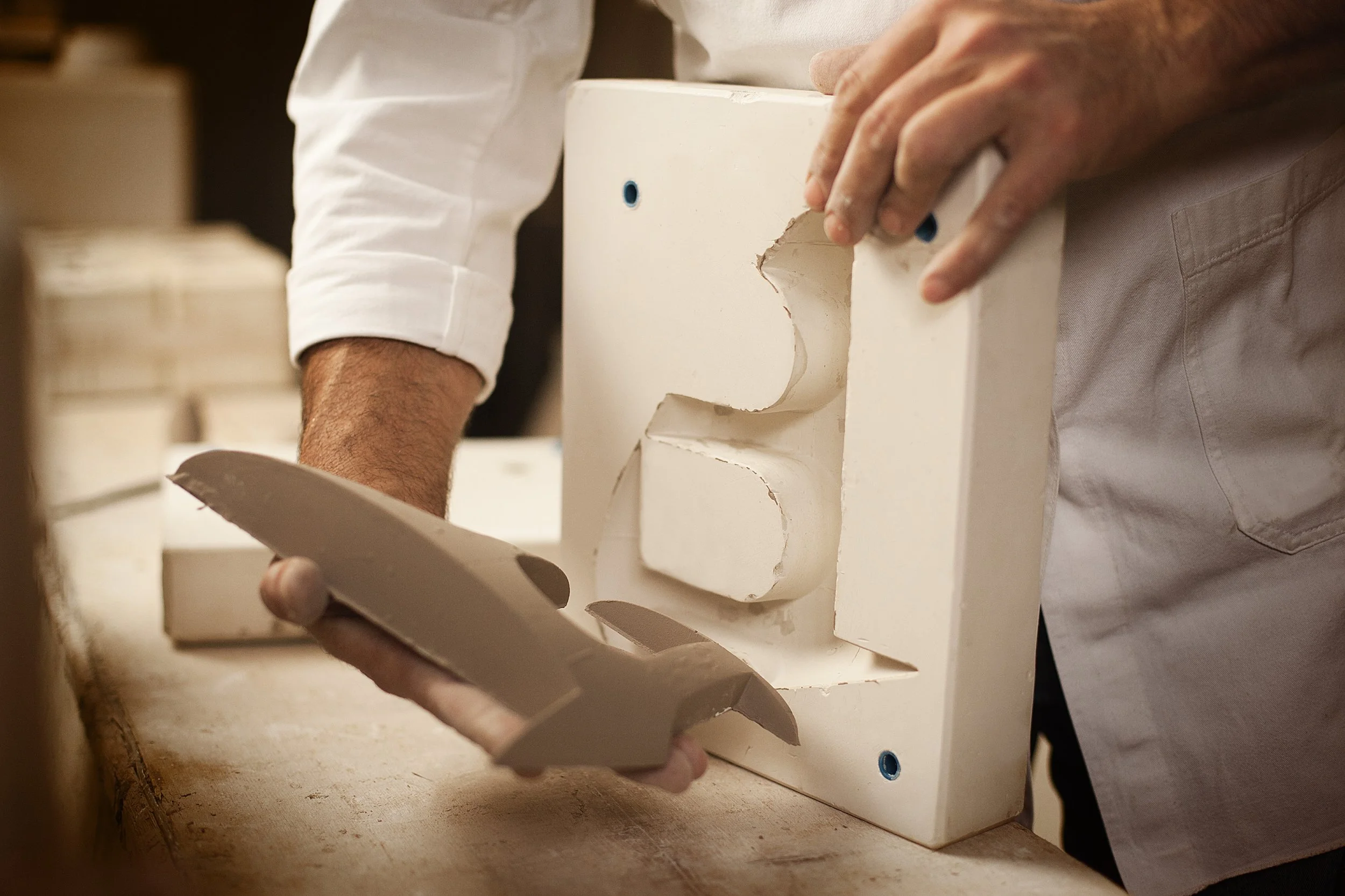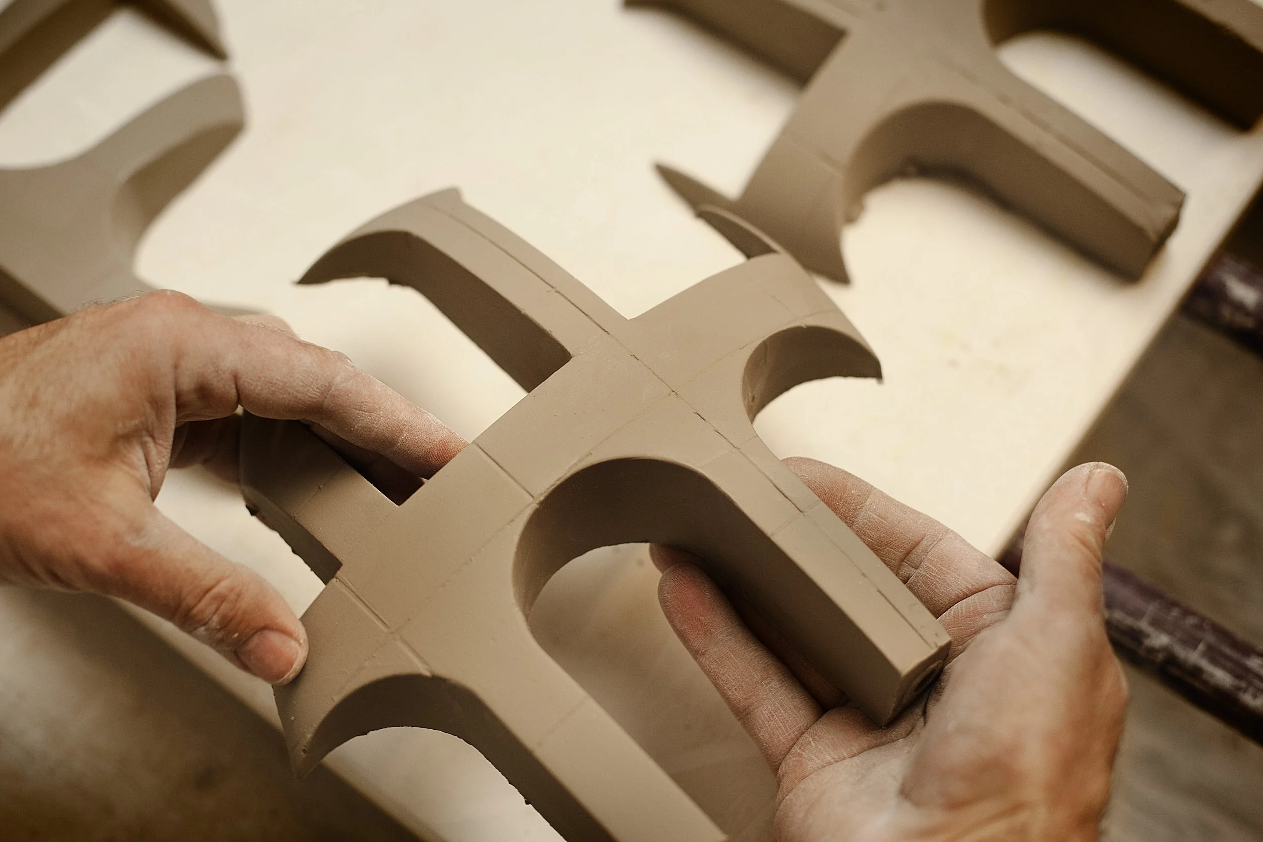 We have interpreted these main features and translated them into evanescent ergonomic shapes. Palazzo della Civiltà Italiana appears in the FENDI HQ in a light and evocative way, its rigid arches become sinuous, emerging and vanishing as if they were belonging to a past memory, a night dream disappearing in the morning.